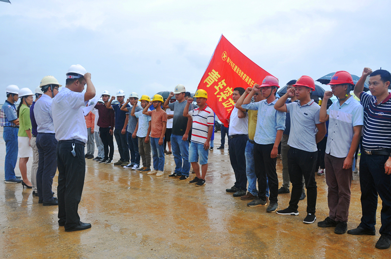 當(dāng)天,細(xì)雨蒙蒙,綠港集團(tuán)黨委書記、董事長(zhǎng)、總經(jīng)理龔國強(qiáng)在項(xiàng)目現(xiàn)場(chǎng)給參建黨員授予了“黨員先鋒隊(duì)”旗幟,給參建團(tuán)員青年授予了“青年突擊隊(duì)”旗幟,綠港集團(tuán)副總經(jīng)理、工會(huì)主席黃麗琴給吳圩空港經(jīng)濟(jì)區(qū)重點(diǎn)項(xiàng)目推進(jìn)組授予了“工人先鋒號(hào)”錦旗,激勵(lì)廣大黨員干部青年同志們要以強(qiáng)烈的政治責(zé)任感、立足本職崗位,充分發(fā)揚(yáng)不怕吃苦、勇于負(fù)重,敢打硬仗、能打硬仗的“綠港鐵軍”優(yōu)良傳統(tǒng),為吳圩空港經(jīng)濟(jì)區(qū)項(xiàng)目建設(shè)做貢獻(xiàn)。