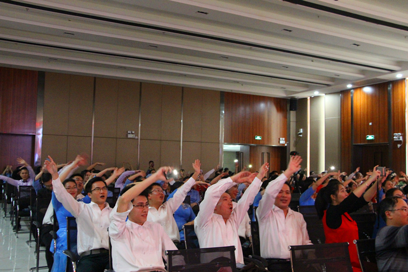 臺下觀眾熱情高漲,展現(xiàn)集團(tuán)公司全體員工團(tuán)結(jié)一心的良好風(fēng)貌