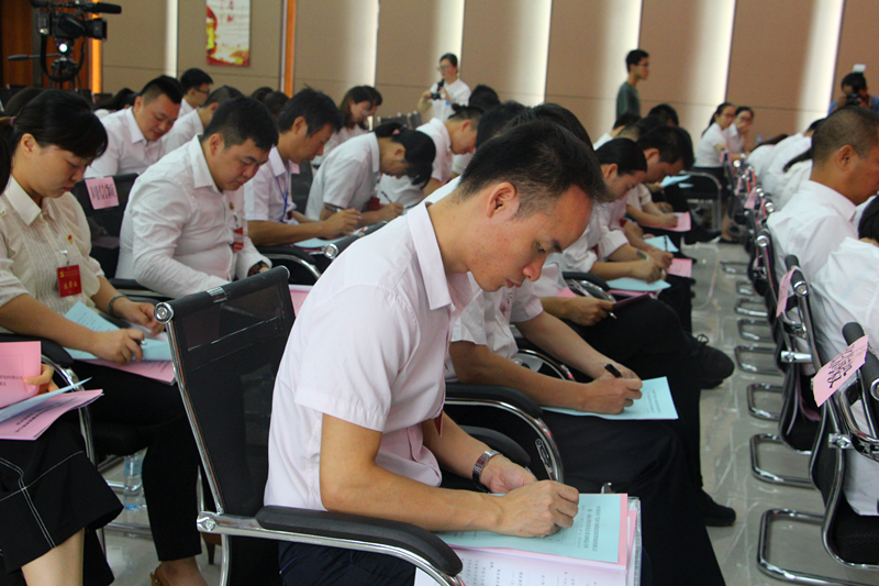 與會(huì)黨員認(rèn)真填寫(xiě)選票