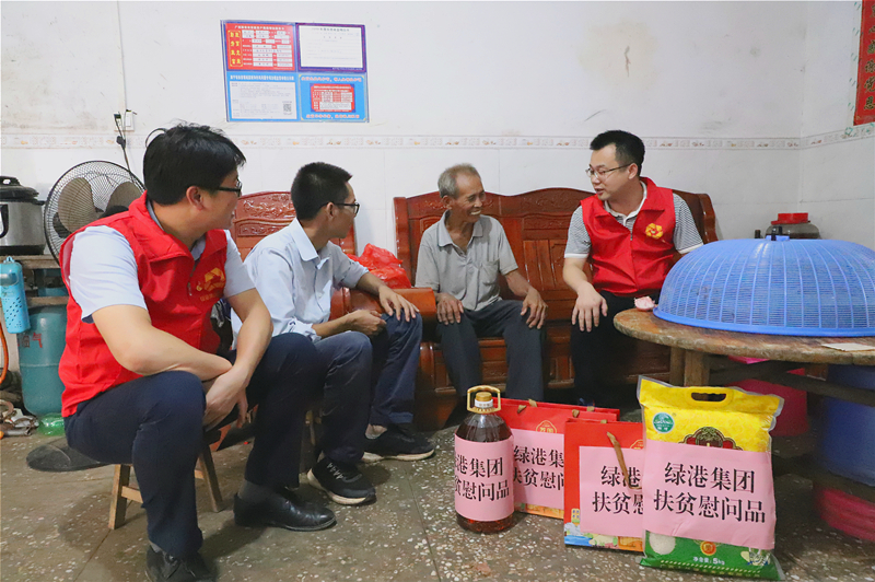 綠港集團(tuán)黨委書(shū)記、董事長(zhǎng)龔國(guó)強(qiáng),黨委副書(shū)記、總經(jīng)理鄧?yán)^慧在貧困戶梁承營(yíng)家開(kāi)展慰問(wèn)(王振霖 圖)