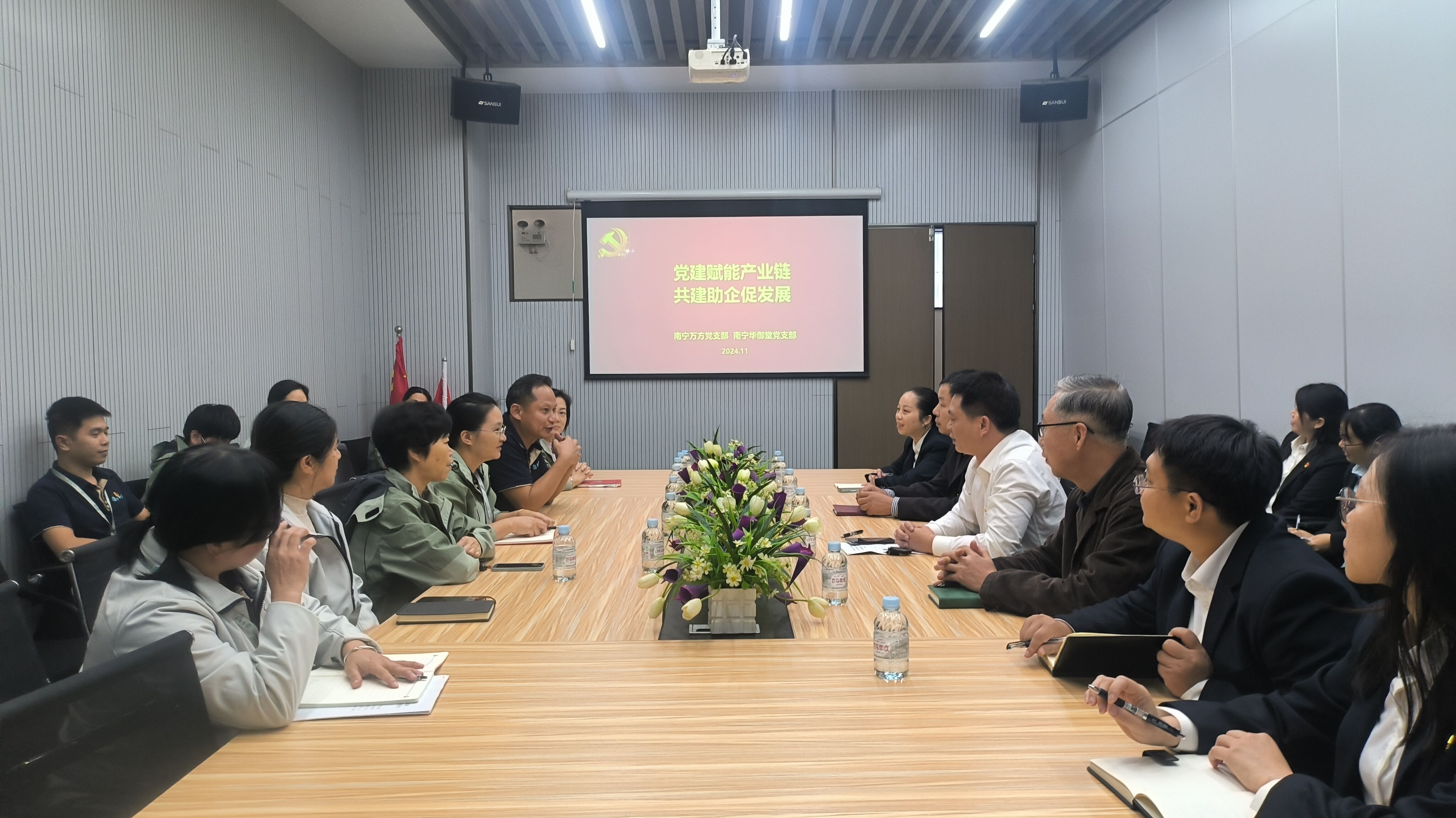 萬方公司黨支部全體黨員來到位于金凱工業(yè)園的華御堂公司,首先參觀了華御堂公司的工作區(qū),了解公司基本經(jīng)營情況。隨后雙方進行了座談,就支部黨建工作、公司經(jīng)營工作、服務(wù)訴求等方面展開交流。華御堂公司的黨員們高度肯定了萬方公司所提供的優(yōu)質(zhì)服務(wù),并對安全培訓(xùn)、服務(wù)優(yōu)化等方面提出了中肯的建議。萬方公司副總經(jīng)理覃富文表示,華御堂公司是生產(chǎn)經(jīng)營企業(yè),萬方公司是物業(yè)服務(wù)企業(yè),均是產(chǎn)業(yè)鏈中重要一環(huán),雙方進行經(jīng)驗交流、信息溝通及相互了解需求有助于促進公司的高質(zhì)量發(fā)展。雙方就今后進行客戶信息、資源共享達成共識,決定建立常態(tài)化的溝通機制,以相對固定的形式開展支部共建聯(lián)建活動,共同致力于提高物業(yè)服務(wù)水平,推動企業(yè)發(fā)展。最后雙方進行了氣排球友誼賽,兩個黨支部的黨員、入黨積極分子熱情參與、激烈角逐,充分體現(xiàn)出雙方團結(jié)拼搏、奮勇爭先的精神風(fēng)貌。雙方通過比賽加深了彼此間的了解和友誼,為雙方繼續(xù)深化黨建交流、加強業(yè)務(wù)合作奠定了良好基礎(chǔ)。